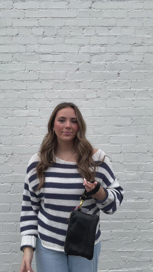 -Faux leather hand strap on front